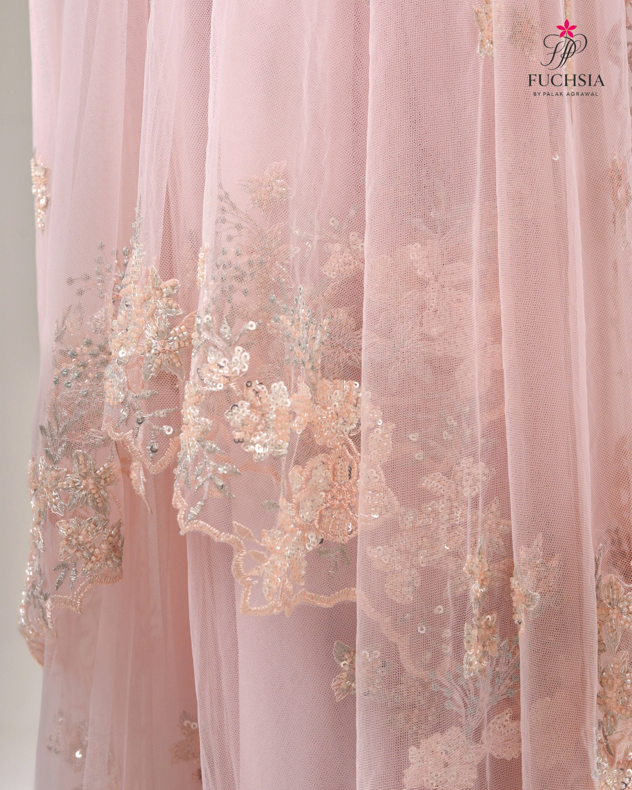 Ethereal yet luxurious, this ensemble is perfect for engagements, evening celebrations, and destination weddings where understated glamour meets couture artistry.