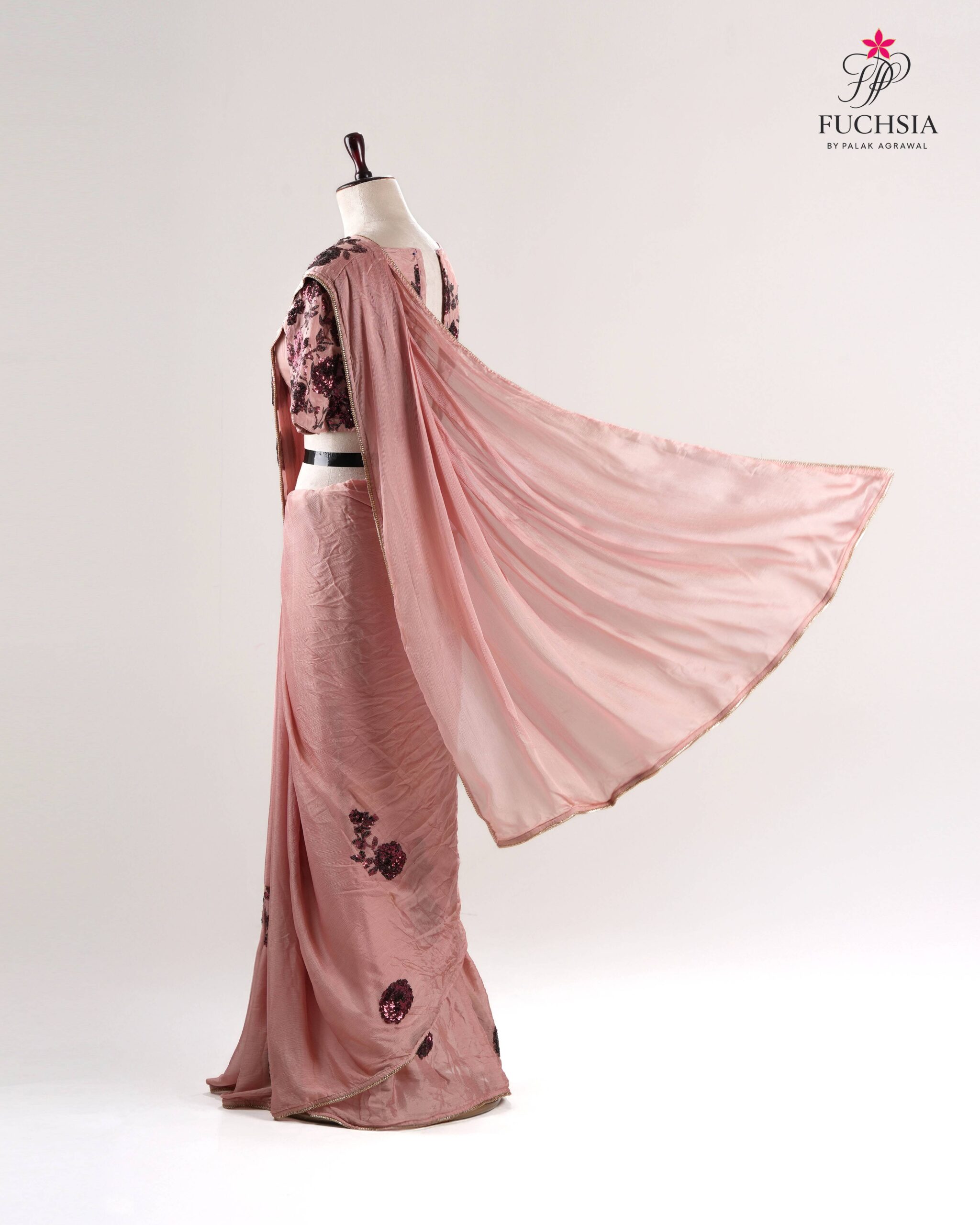 Where elegance meets effortless shimmer — the Blush Wine Saree from Threads of Celebration captures timeless romance in every drape.